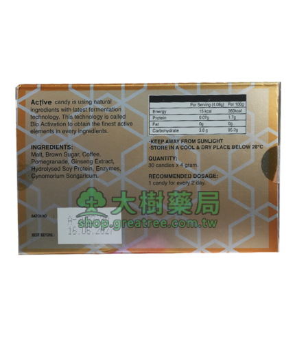 精力充沛:提高我們的機能,並保持一個健康和快樂的生活,從汗馬糖中獲取氨基酸的補充,尤其是在鍛煉之中,它會很快的使您的身體更加敏捷和強勁有力。